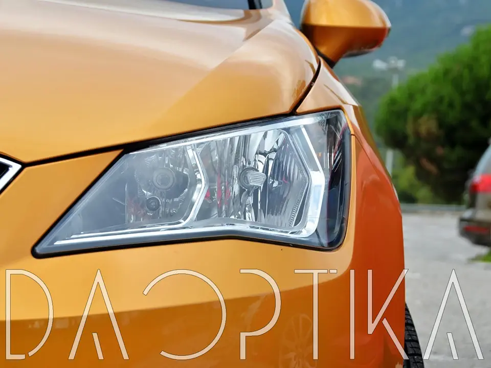 Стекло левой фары из оптического поликарбоната с защитным лаком для замены оригинального стекола фары на SEAT Ibiza 2012-2017 4 поколение [рестайлинг]