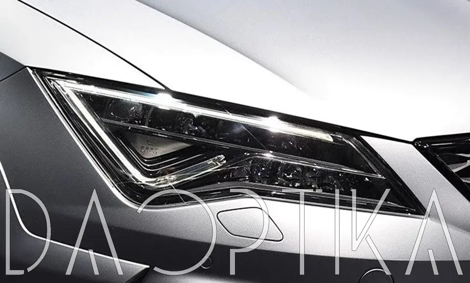 Стекло левой фары из оптического поликарбоната с защитным лаком для замены оригинального стекола фары на SEAT Leon 2012-2019 3 поколение