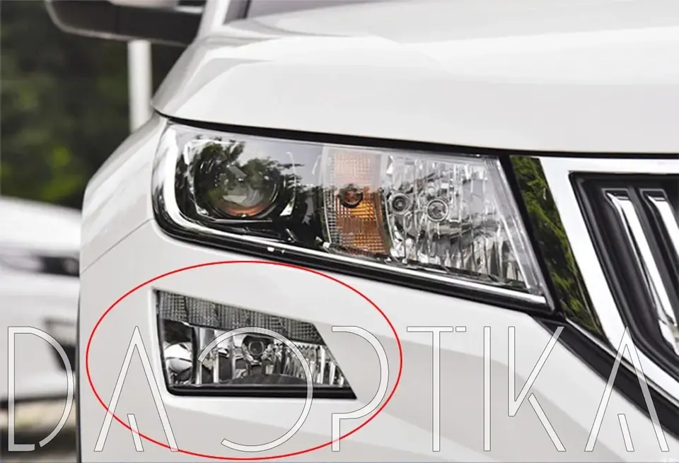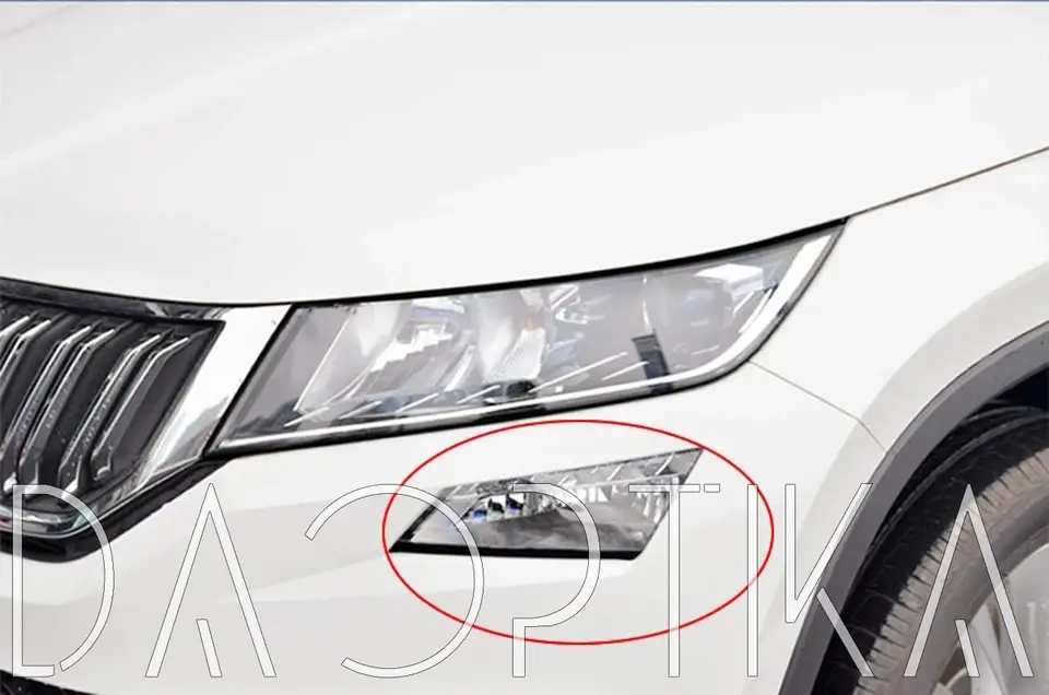 Стекло левой фары из оптического поликарбоната с защитным лаком для замены оригинального стекола фары на Skoda Kodiaq 2016-2022 1 поколение