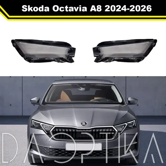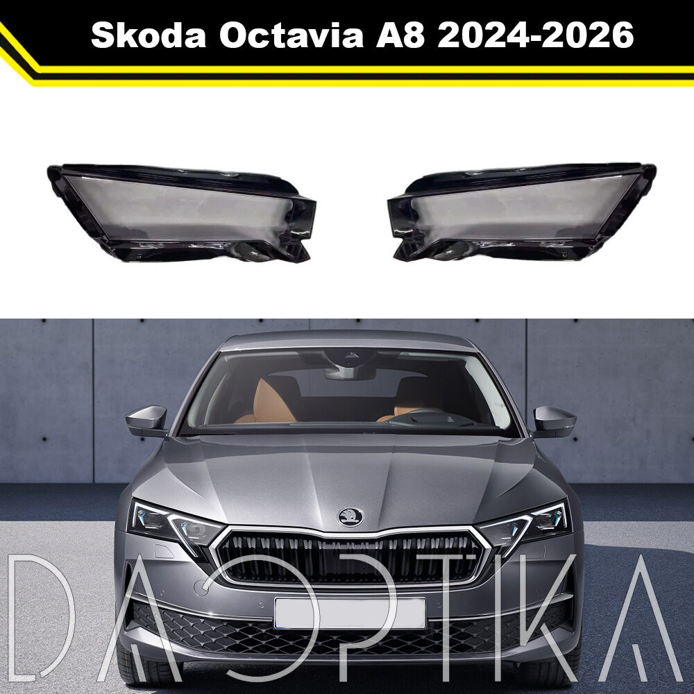 Стекло фары левое Skoda Octavia A8 рест 2024-2026