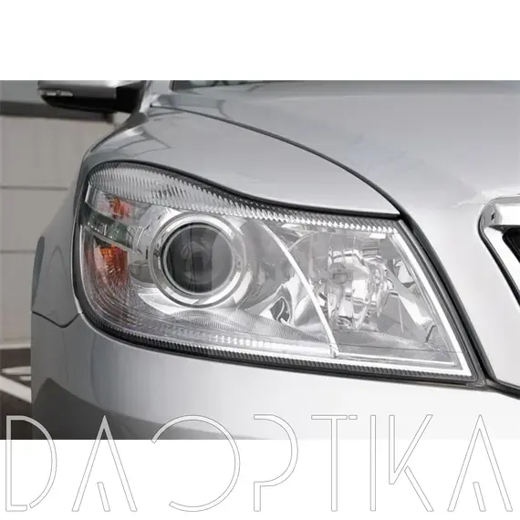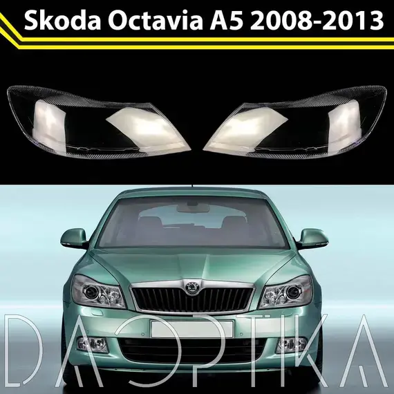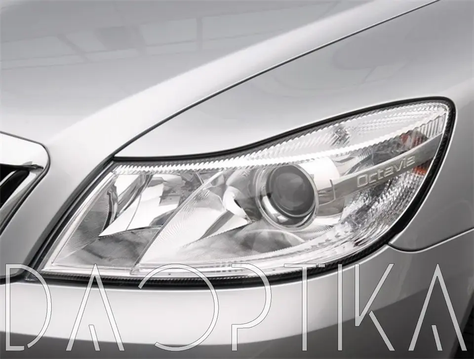 Стекло левой фары из оптического поликарбоната с защитным лаком для замены оригинального стекола фары на Skoda Octavia 2008-2013 A5 2 поколение [рестайлинг]