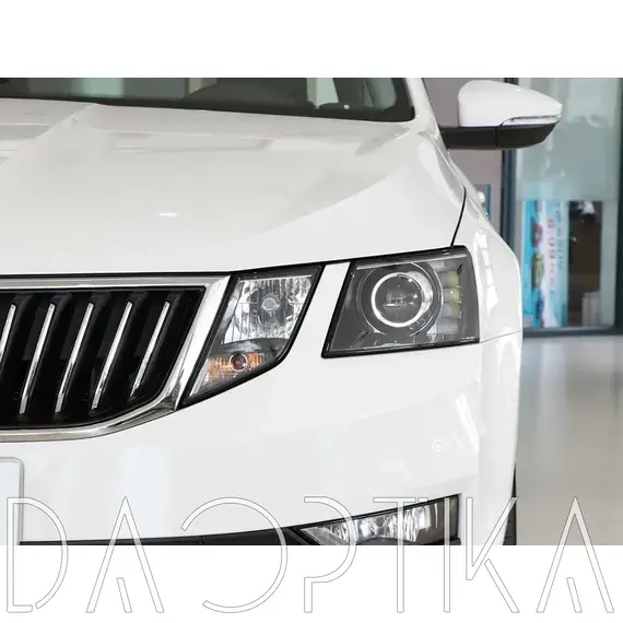 Стекло левой фары из оптического поликарбоната с защитным лаком для замены оригинального стекола фары на Skoda Octavia 2017-2023 A7 3 поколение [рестайлинг]