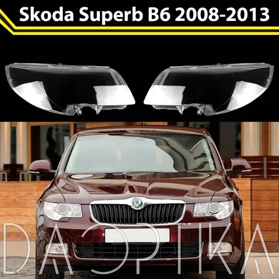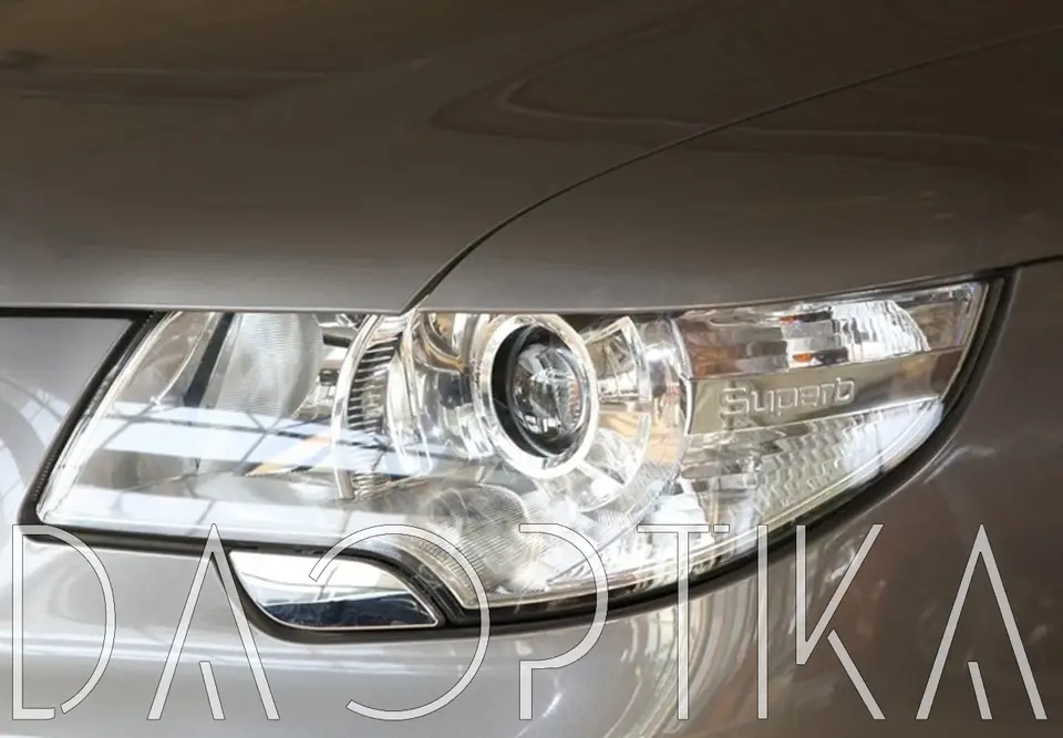 Стекло левой фары из оптического поликарбоната с защитным лаком для замены оригинального стекола фары на Skoda Superb 2008-2013 2 поколение