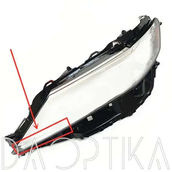 Стекло левой фары из оптического поликарбоната с защитным лаком для замены оригинального стекола фары на Toyota Camry 2017-2024 XV70