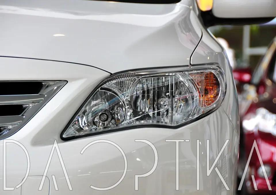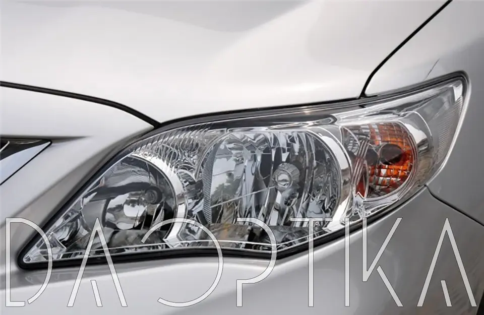 Стекло левой фары из оптического поликарбоната с защитным лаком для замены оригинального стекола фары на Toyota Corolla 2008-2013 E140/150 [рестайлинг]