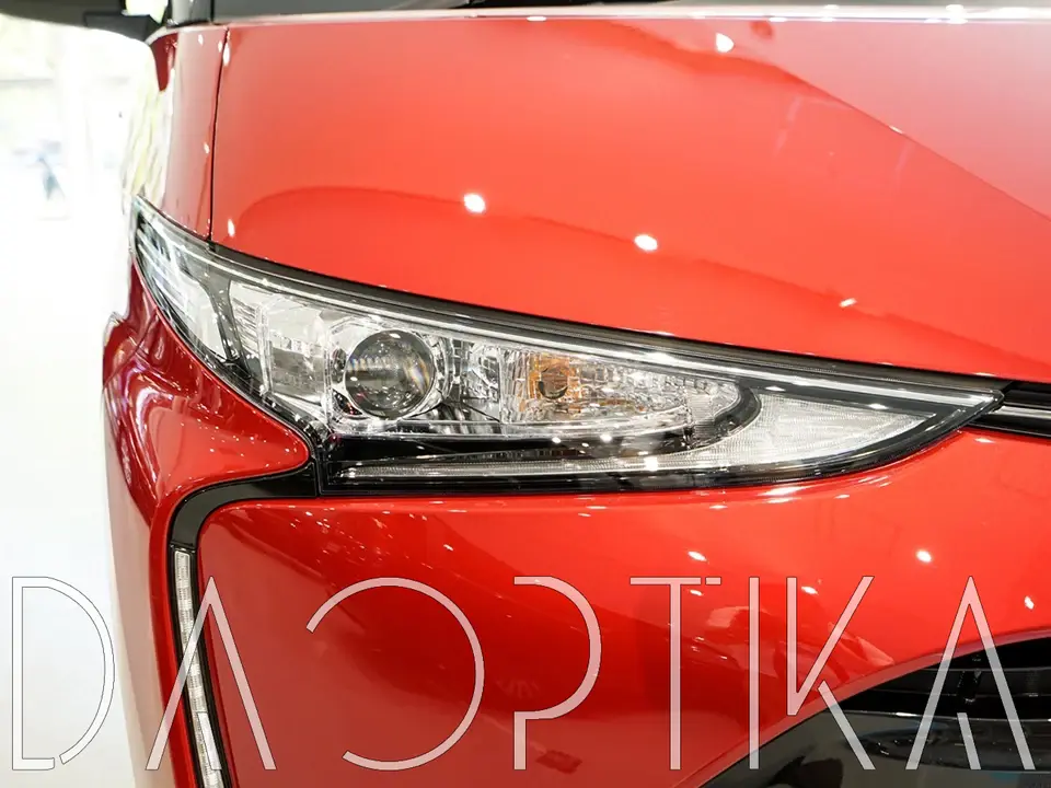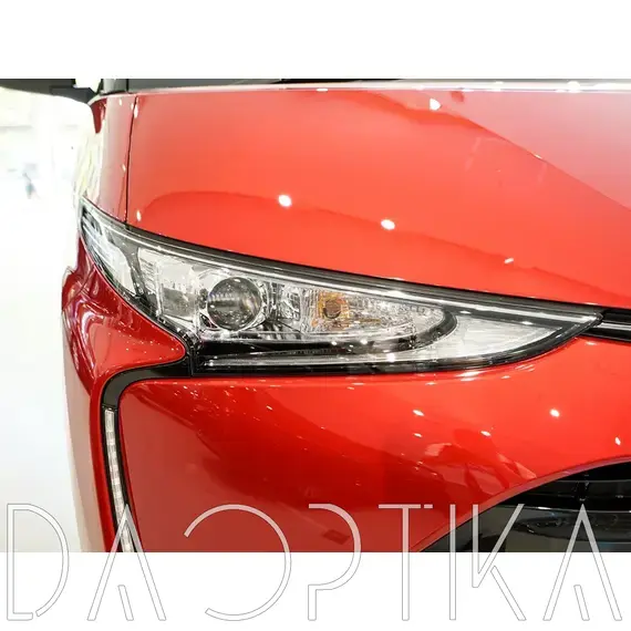 Стекло левой фары из оптического поликарбоната с защитным лаком для замены оригинального стекола фары на Toyota Estima 2016-2019 3 поколение [3-й рестайлинг]