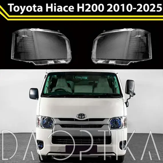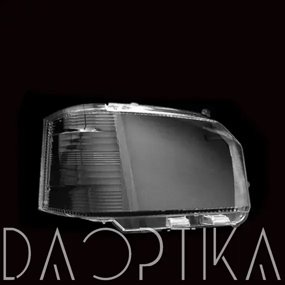 Стекло левой фары из оптического поликарбоната с защитным лаком для замены оригинального стекола фары на Toyota Hiace 2010-2024 H200 [рестайлинг]