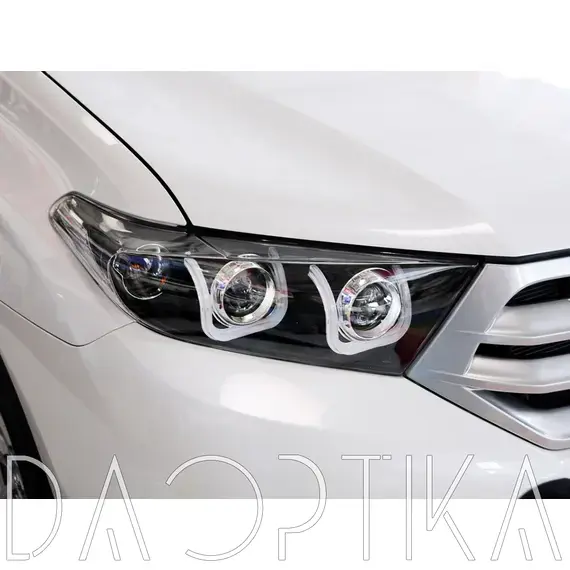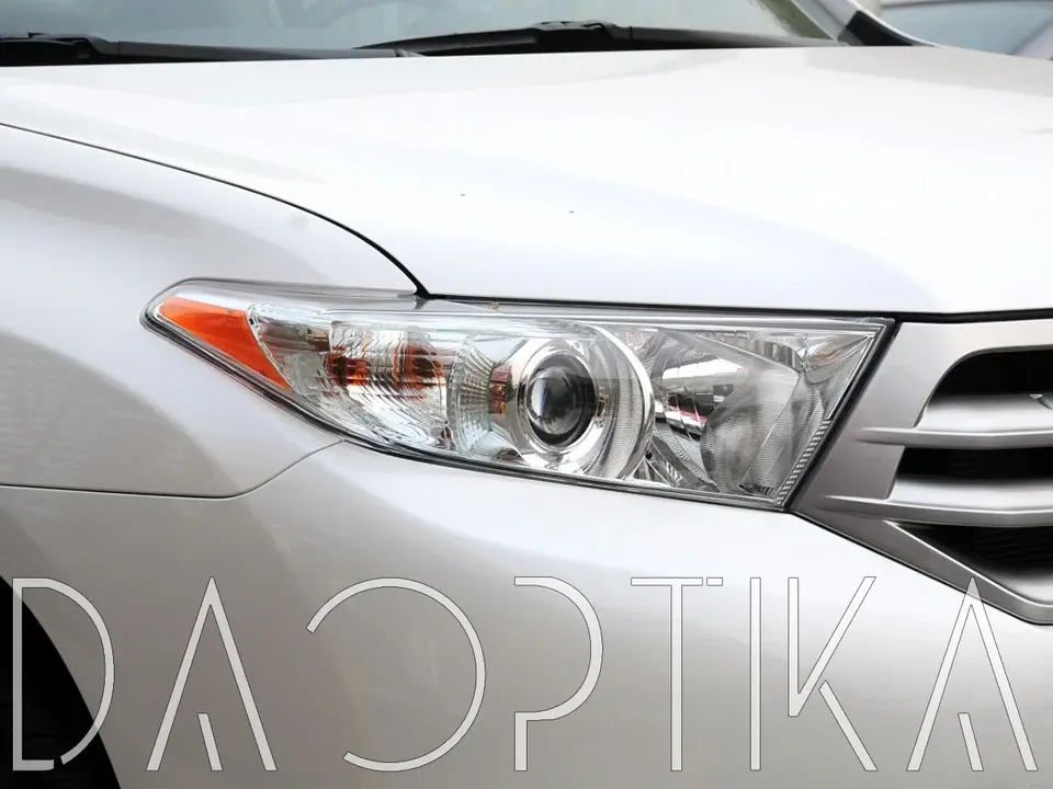 Стекло левой фары из оптического поликарбоната с защитным лаком для замены оригинального стекола фары на Toyota Highlander 2010-2013 U40 2 поколение [рестайлинг]