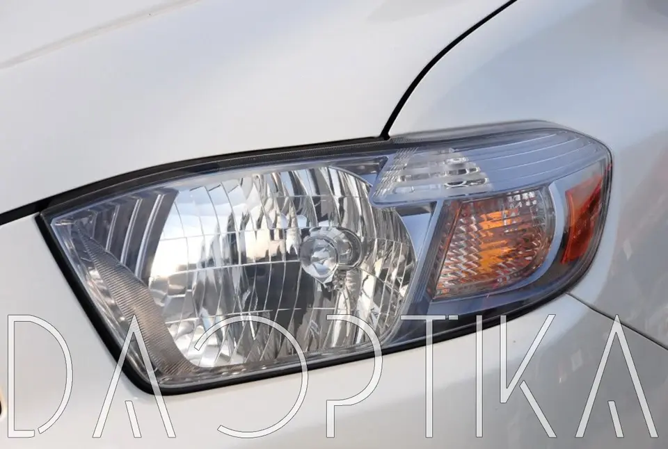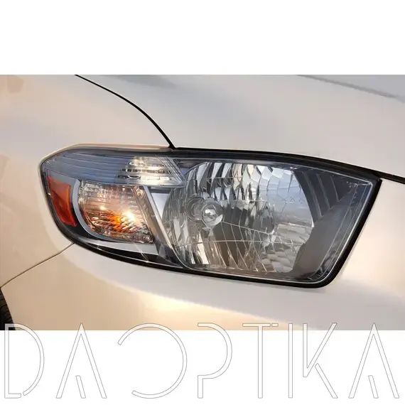 Стекло левой фары из оптического поликарбоната с защитным лаком для замены оригинального стекола фары на Toyota Highlander 2008-2010 U40 2 поколение