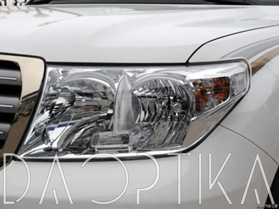 Стекло левой фары из оптического поликарбоната с защитным лаком для замены оригинального стекола фары на Toyota Land Cruiser 2007-2012 J200