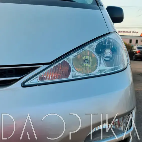 Стекло левой фары из оптического поликарбоната с защитным лаком для замены оригинального стекола фары на Toyota Previa 2001-2004 XR30/XR40