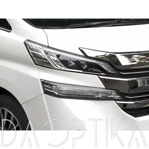 Стекло левой фары из оптического поликарбоната с защитным лаком для замены оригинального стекола фары на Toyota Vellfire 2015-2017 2 поколение