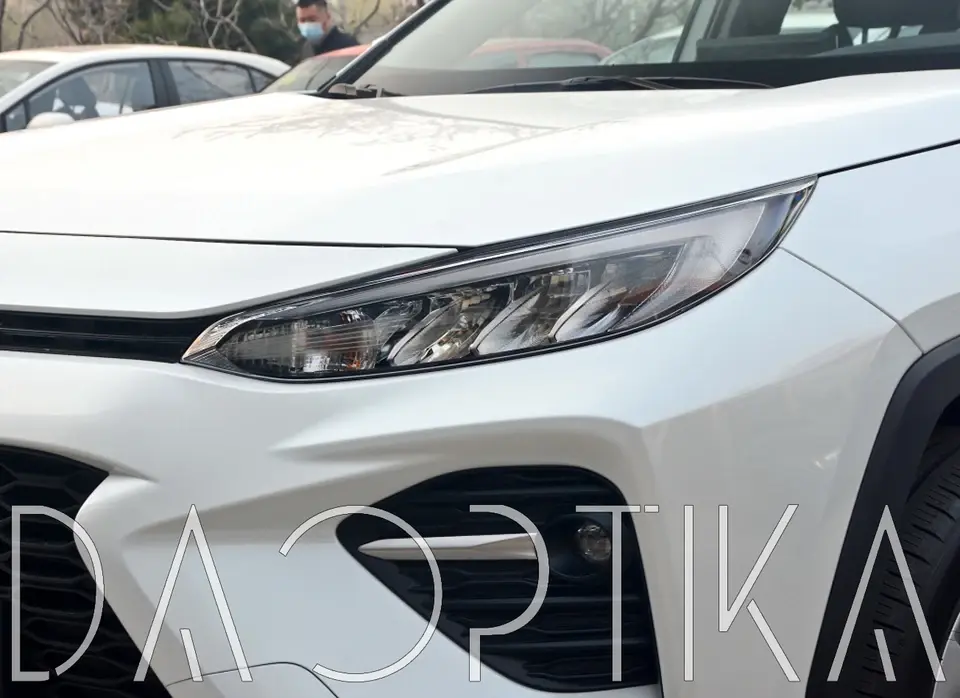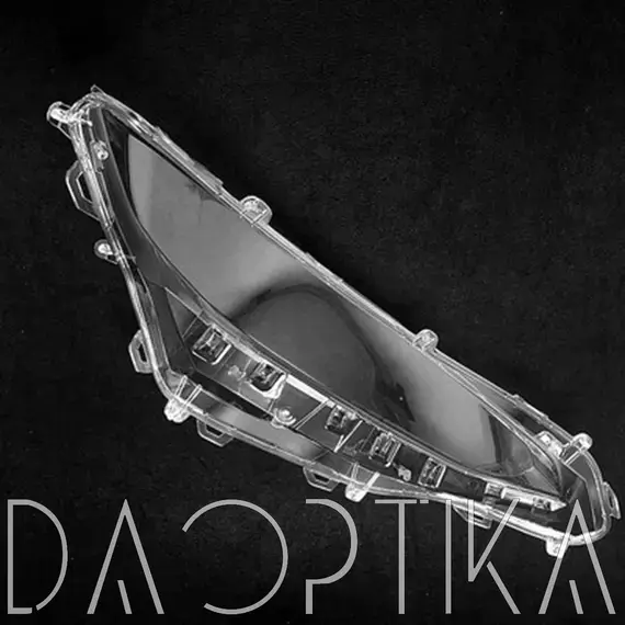Стекло левой фары из оптического поликарбоната с защитным лаком для замены оригинального стекола фары на Toyota Wildlander 2020-2024