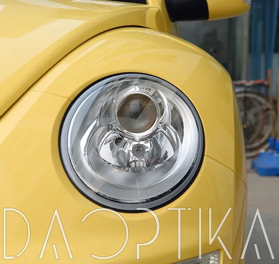 Стекло левой фары из оптического поликарбоната с защитным лаком для замены оригинального стекола фары на Volkswagen Beetle 2005-2010 1 поколение [рестайлинг]