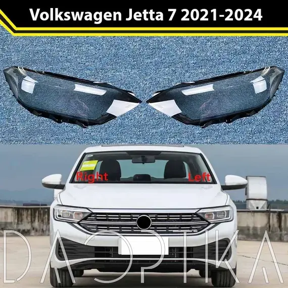 Стекло левой фары из оптического поликарбоната с защитным лаком для замены оригинального стекола фары на Volkswagen Jetta 2021-2024 7 поколение [рестайлинг]