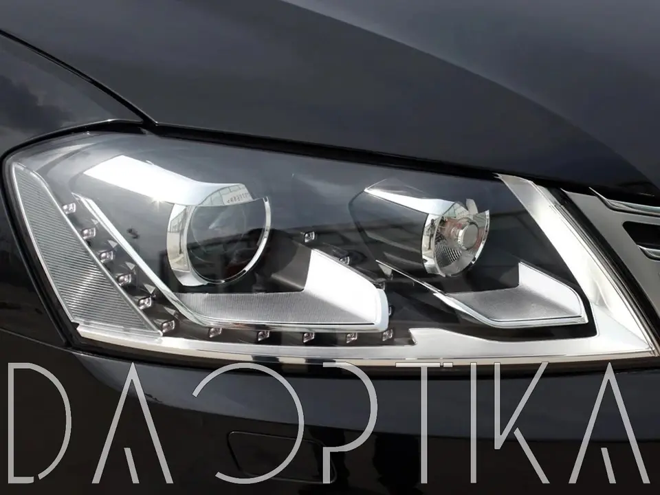 Стекло левой фары из оптического поликарбоната с защитным лаком для замены оригинального стекола фары на Volkswagen Passat 2010-2015 B7