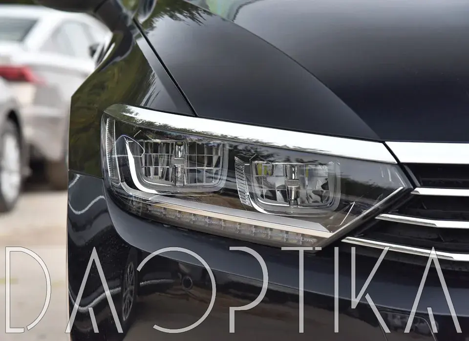 Стекло левой фары из оптического поликарбоната с защитным лаком для замены оригинального стекола фары на Volkswagen Passat 2014-2020 B8