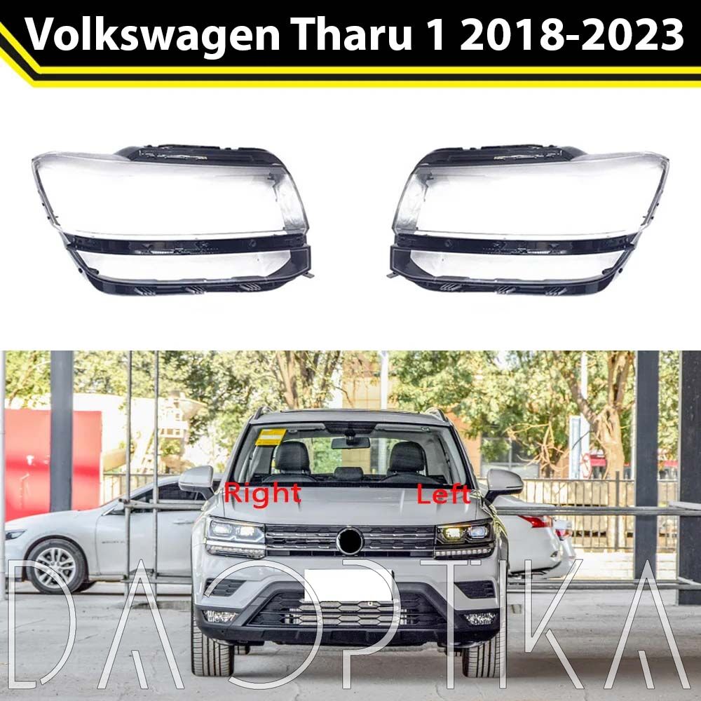 Стекло левой фары из оптического поликарбоната с защитным лаком для замены оригинального стекола фары на Volkswagen Tharu 2018-2023 1 поколение