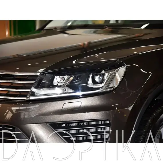Стекло левой фары из оптического поликарбоната с защитным лаком для замены оригинального стекола фары на Volkswagen Touareg 2014-2018 2 поколение [рестайлинг]