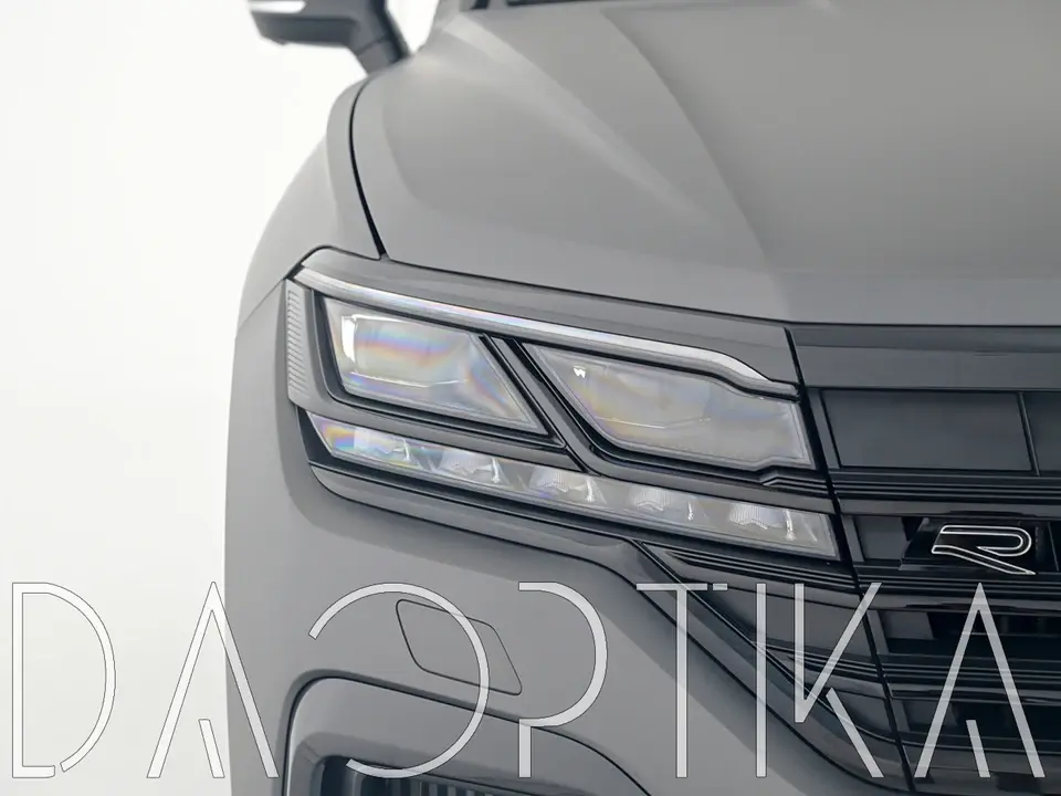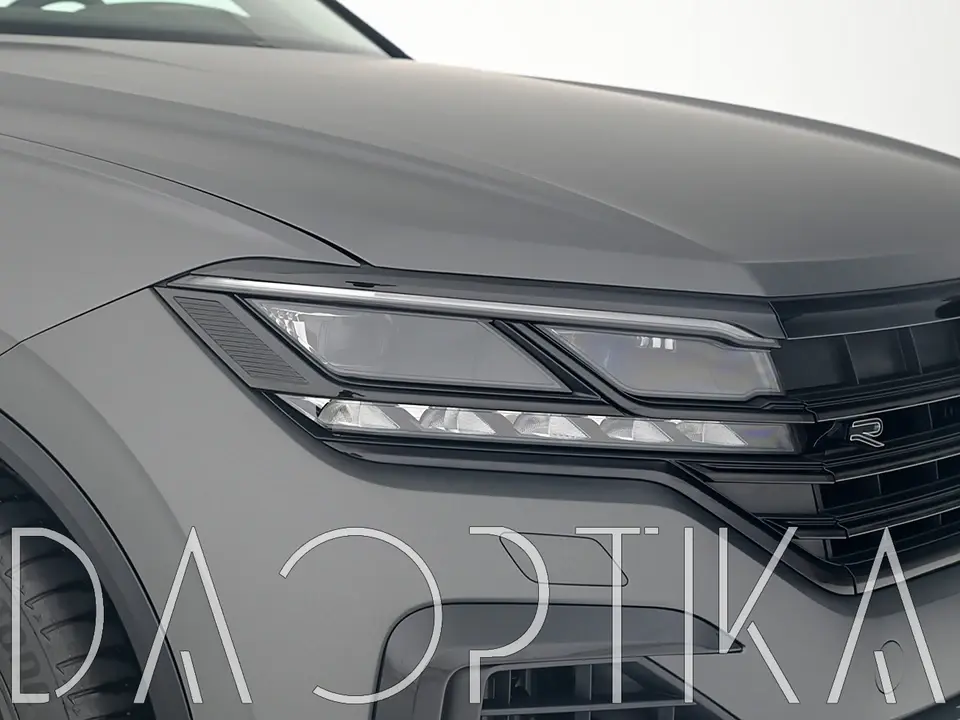 Стекло левой фары из оптического поликарбоната с защитным лаком для замены оригинального стекола фары на Volkswagen Touareg 2018-2023 3 поколение