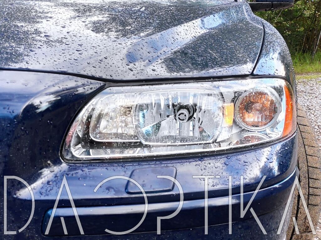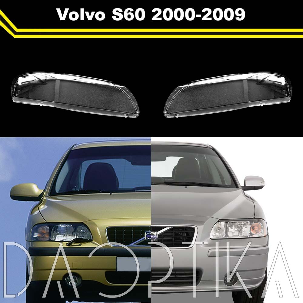 Стекло левой фары из оптического поликарбоната с защитным лаком для замены оригинального стекола фары на Volvo S60 2000-2009 1 поколение