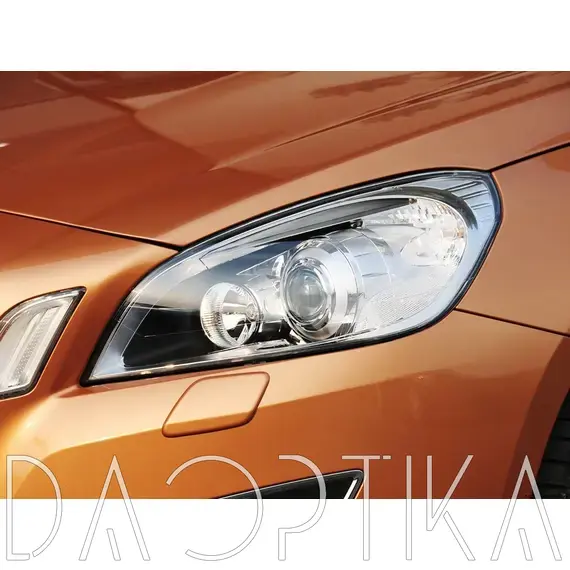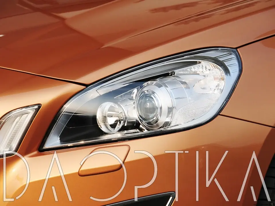 Стекло левой фары из оптического поликарбоната с защитным лаком для замены оригинального стекола фары на Volvo S60 2010-2013 2 поколение