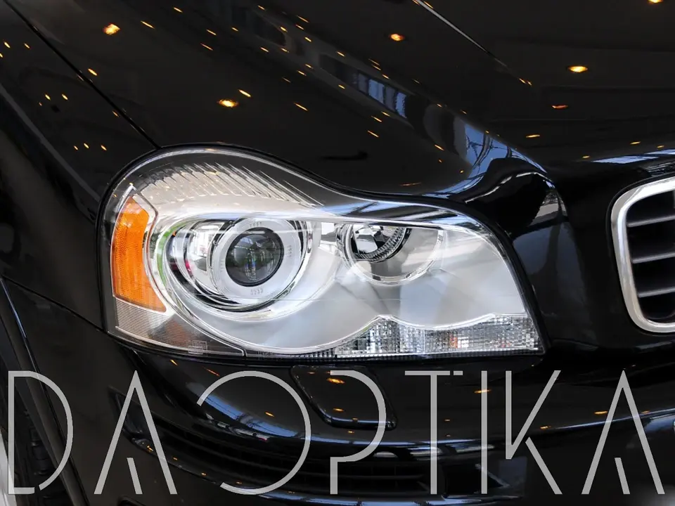 Стекло левой фары из оптического поликарбоната с защитным лаком для замены оригинального стекола фары на Volvo XC90 2002-2014 1 поколение