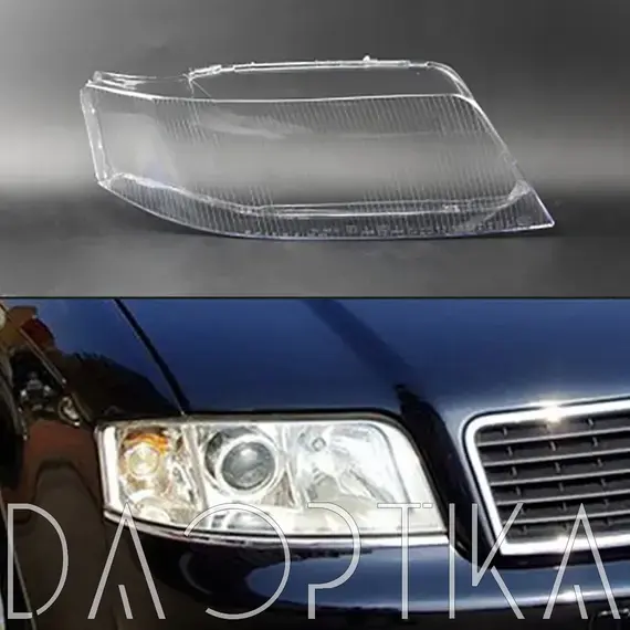 Стекло правой фары из оптического поликарбоната с защитным лаком для замены оригинального стекола фары на Audi A6 1997-2001 4B/C5