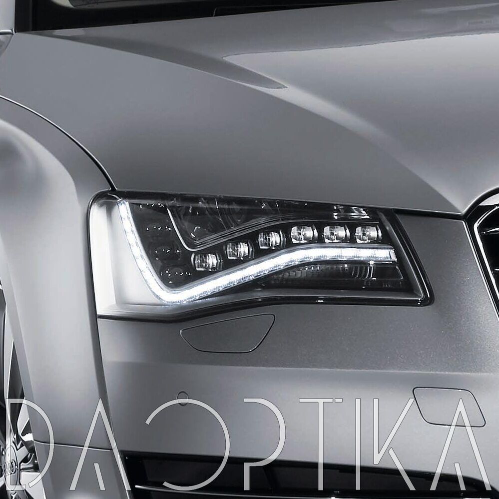 Стекло правой фары из оптического поликарбоната с защитным лаком для замены оригинального стекола фары на Audi A8 2009-2014 D4/4H