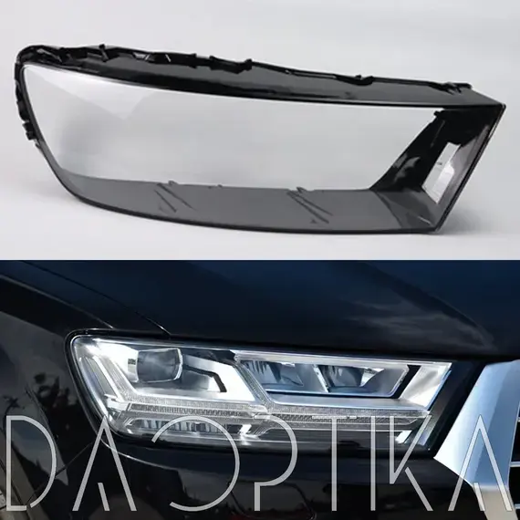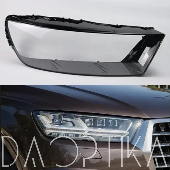 Стекло правой фары из оптического поликарбоната с защитным лаком для замены оригинального стекола фары на Audi Q7 2015-2019 4M