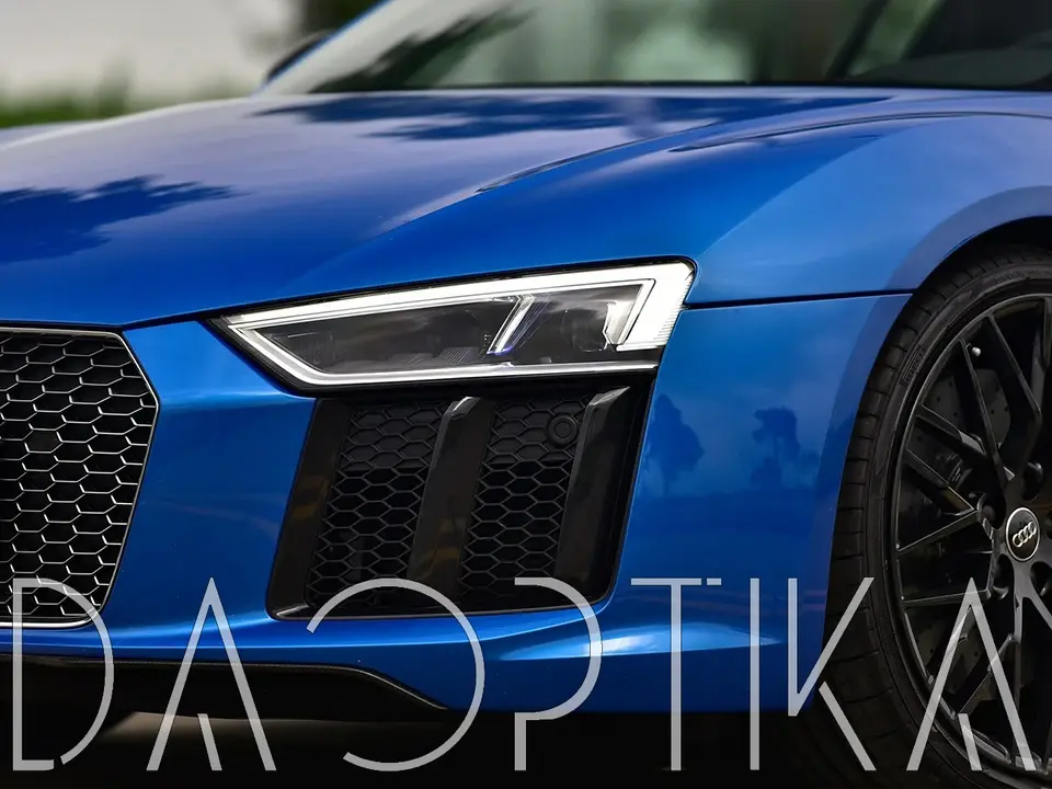Стекло правой фары из оптического поликарбоната с защитным лаком для замены оригинального стекола фары на Audi R8 2015-2024 2 поколение