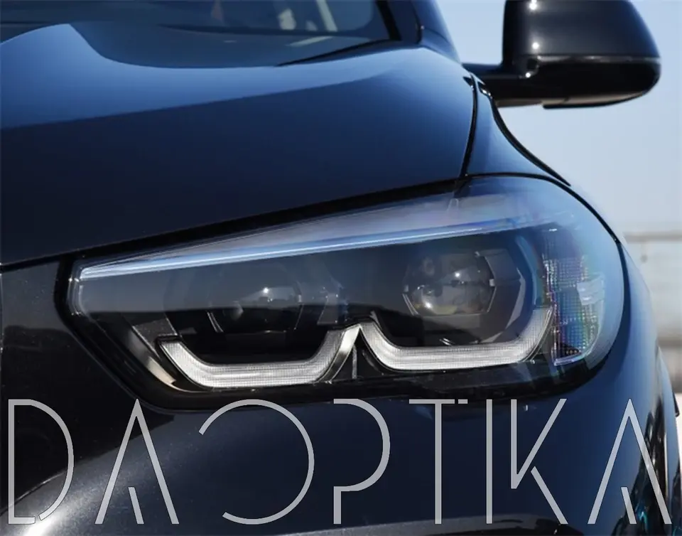 Стекло правой фары из оптического поликарбоната с защитным лаком для замены оригинального стекола фары на BMW X6 2019-2023 G06