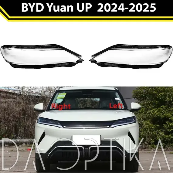 Стекло правой фары из оптического поликарбоната с защитным лаком для замены оригинального стекола фары на BYD Yuan UP 2024-2025
