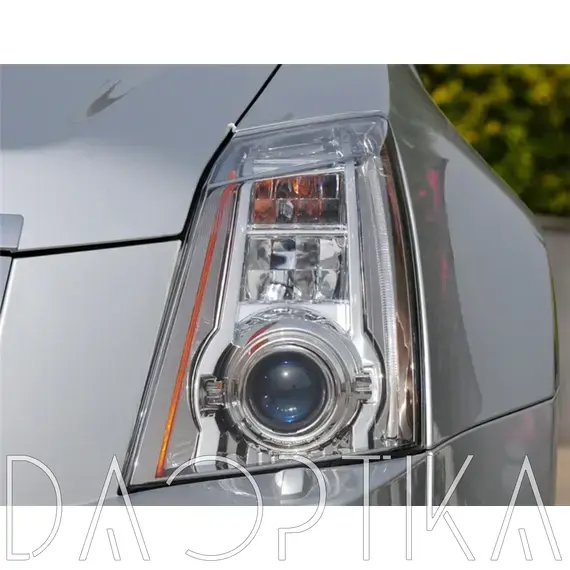 Стекло правой фары из оптического поликарбоната с защитным лаком для замены оригинального стекола фары на Cadillac CTS 2007-2014 2 поколение