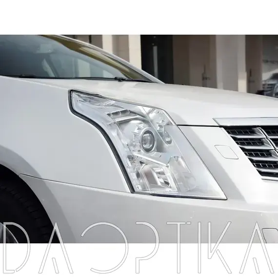 Стекло правой фары из оптического поликарбоната с защитным лаком для замены оригинального стекола фары на Cadillac SRX 2009-2016 2 поколение