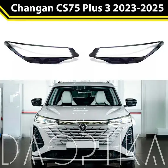 Стекло правой фары из оптического поликарбоната с защитным лаком для замены оригинального стекола фары на Changan CS75 Plus 2023-2024 3 поколение