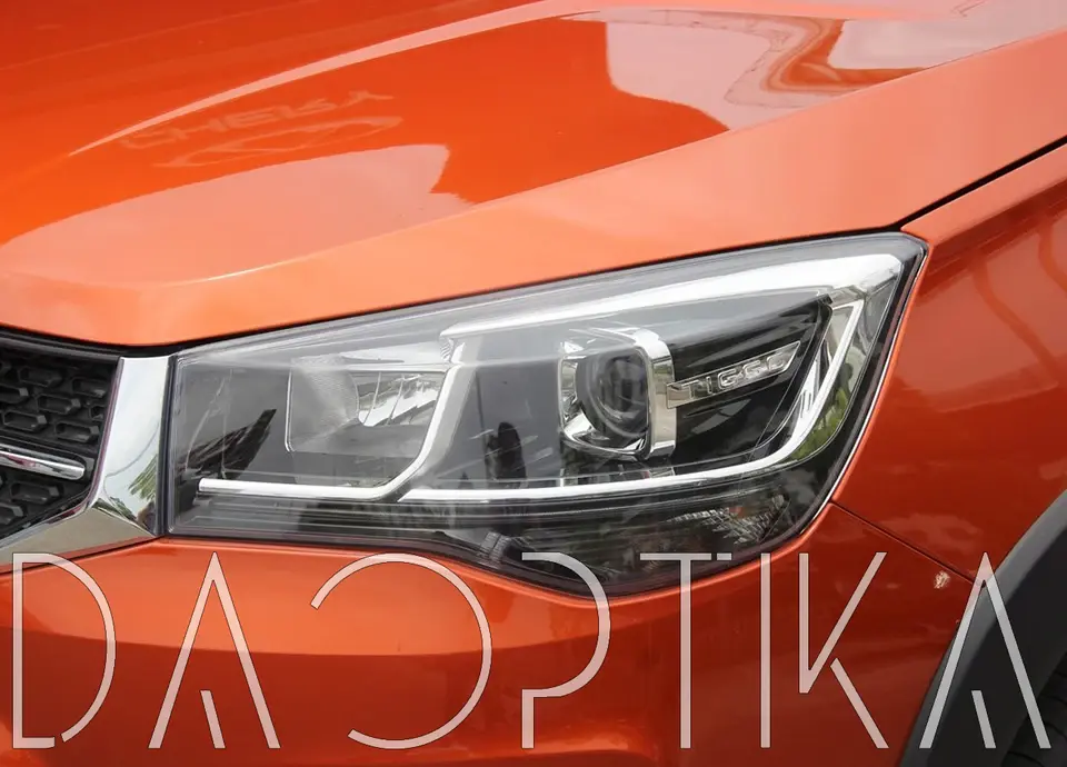 Стекло правой фары из оптического поликарбоната с защитным лаком для замены оригинального стекола фары на Chery Tiggo 3x 2016-2020 1 поколение