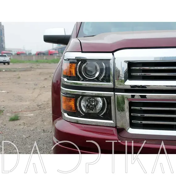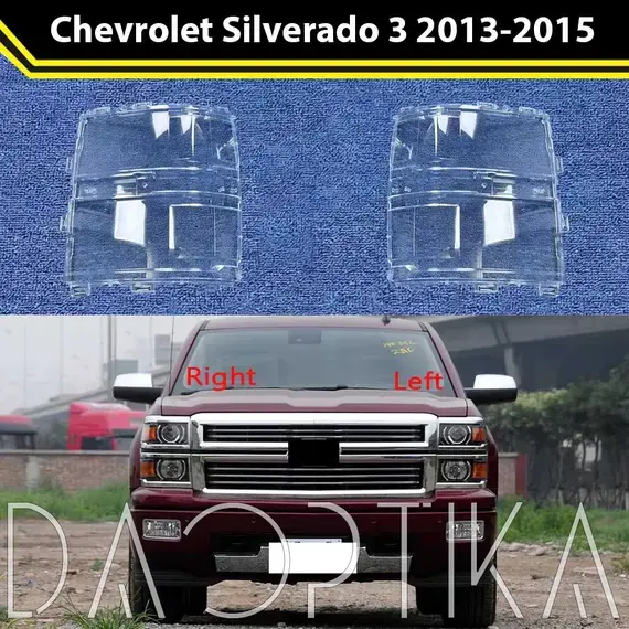 Стекло правой фары из оптического поликарбоната с защитным лаком для замены оригинального стекола фары на Chevrolet Silverado 2013-2015 3 поколение