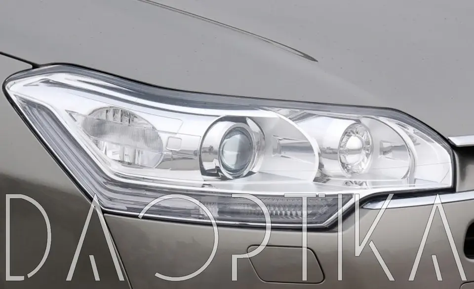 Стекло правой фары из оптического поликарбоната с защитным лаком для замены оригинального стекола фары на Citroen C5 2007-2017 2 поколение