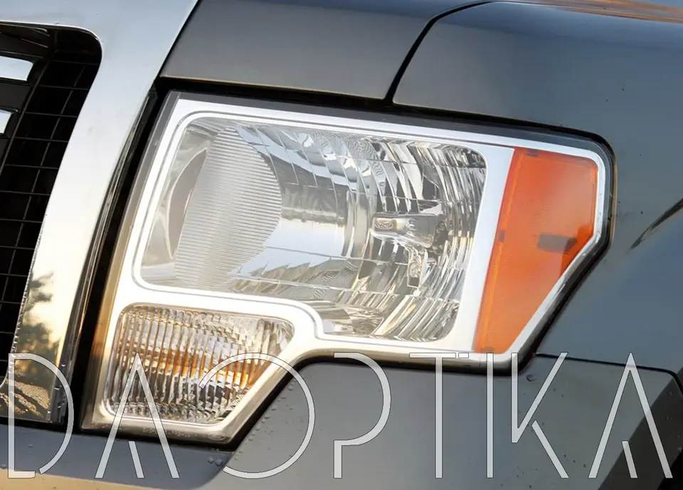 Стекло правой фары из оптического поликарбоната с защитным лаком для замены оригинального стекола фары на Ford F-Series 2009-2014 12 поколение
