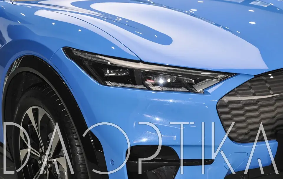 Стекло правой фары из оптического поликарбоната с защитным лаком для замены оригинального стекола фары на Ford Mustang Mach-E 2020-2024
