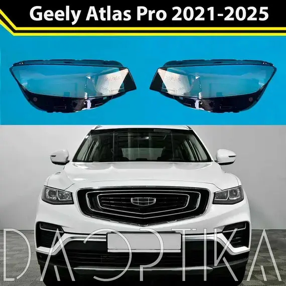 Стекло правой фары из оптического поликарбоната с защитным лаком для замены оригинального стекола фары на Geely Atlas Pro 2021-2025 1 поколение