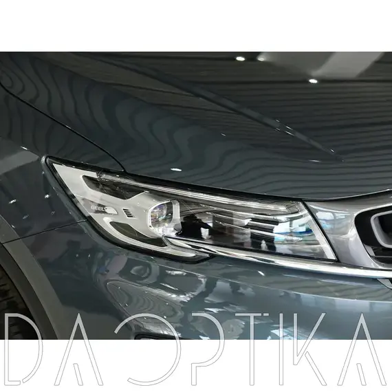 Стекло правой фары из оптического поликарбоната с защитным лаком для замены оригинального стекола фары на Geely Jiaji 2019-2022 1 поколение