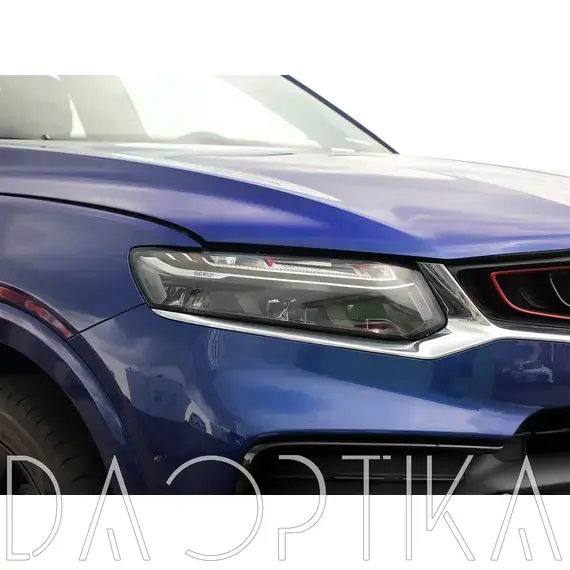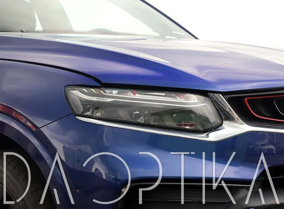 Стекло правой фары из оптического поликарбоната с защитным лаком для замены оригинального стекола фары на Geely Tugella 2019-2023 1 поколение