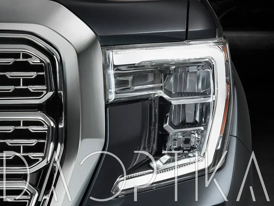 Стекло правой фары из оптического поликарбоната с защитным лаком для замены оригинального стекола фары на GMC Sierra 2018-2024 4 поколение