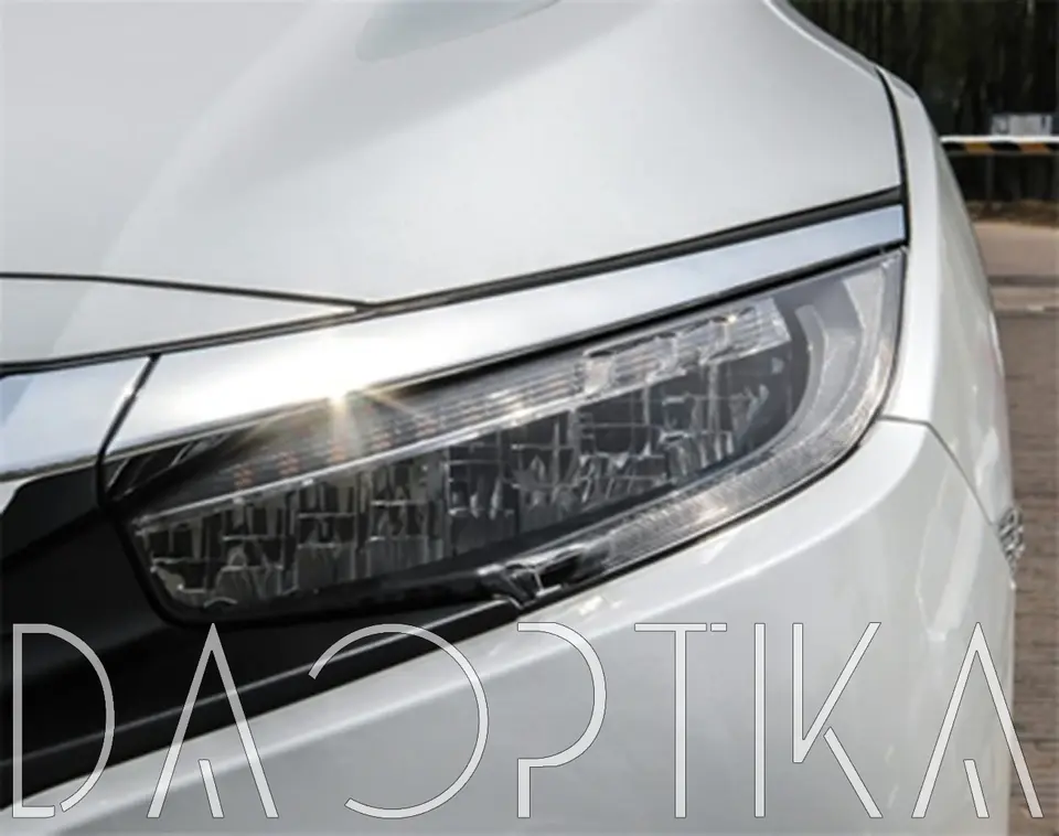 Стекло правой фары из оптического поликарбоната с защитным лаком для замены оригинального стекола фары на Honda Civic 2015-2021 10 поколение