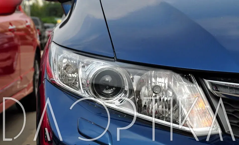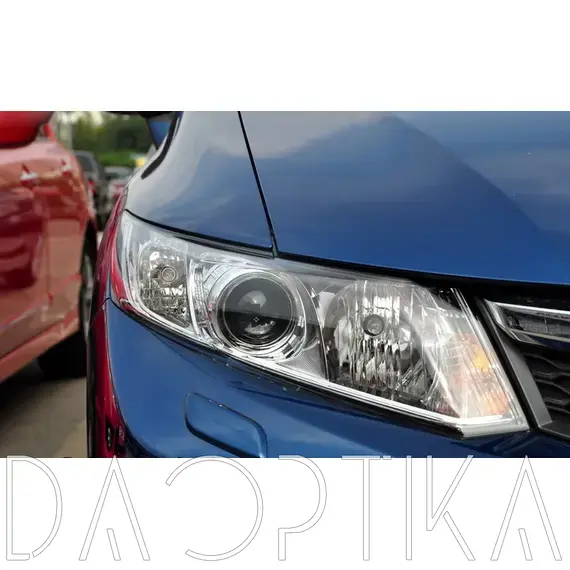 Стекло правой фары из оптического поликарбоната с защитным лаком для замены оригинального стекола фары на Honda Civic 2012-2015 9 поколение