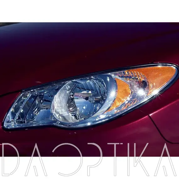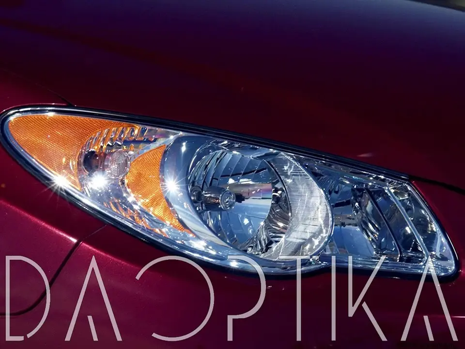Стекло правой фары из оптического поликарбоната с защитным лаком для замены оригинального стекола фары на Hyundai Elantra 2006-2011 HD
