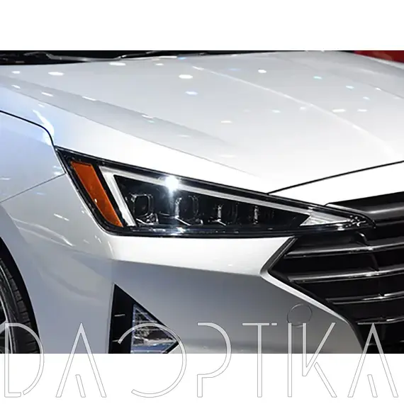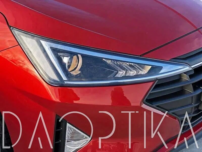 Стекло правой фары из оптического поликарбоната с защитным лаком для замены оригинального стекола фары на Hyundai Elantra 2018-2020 6 AD [рестайлинг]