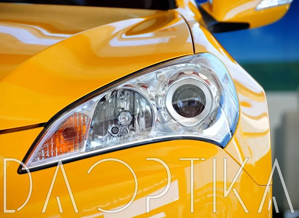 Стекло правой фары из оптического поликарбоната с защитным лаком для замены оригинального стекола фары на Hyundai Genesis Coupe 2009-2012 1 поколение